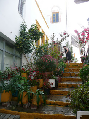 Несколько слов о ее истории. Хора или Патмос – столица острова и его первое поселение. Оно стихийно возникло в XIIв. под стенами монастыря. Неприступные стены предоставляли защиту от захватчиков и пиратов. После падения Константинополя в 1453 г. часть его жителей также поселились в Хоре. Сегодня это один из редких сохранившихся памятников византийского градостроительства.