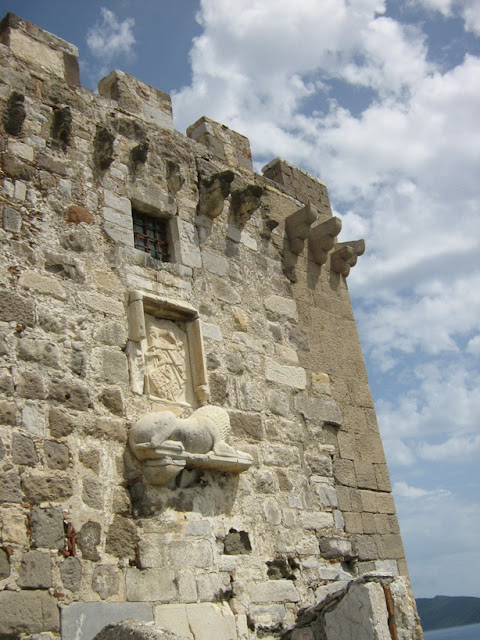 Бодрум по-турецки означает «подвал». Но, как говорят, его название происходит от Petronium – замка в честь Святого Петра, построенного здесь рыцарями-иоаннитами. Стены замка были возведены в начале XVв. немецким рыцарем-архитектором Генрихом Шлегельхольтом. В качестве строительного материала использовались обломки одного из Семи чудес света — мавзолея карийского правителя Мавсола. Стены укреплены 5-ю башнями: Английской, Итальянской, Немецкой, Французской и Змеиной и украшены около 250 рыцарскими гербами.